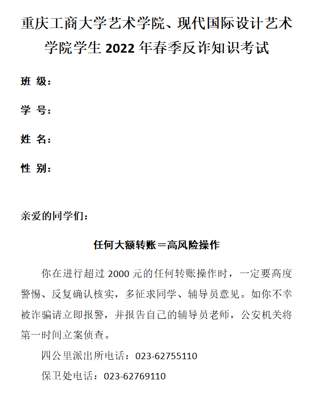 为提高同学们对通讯网络诈骗的识别和防范能力,太阳网集团tcy8722、艺术公司联合举办了老员工反诈防骗系列活动,包括反诈知识竞赛、反诈知识讲座和公寓区反诈宣传三个部分。