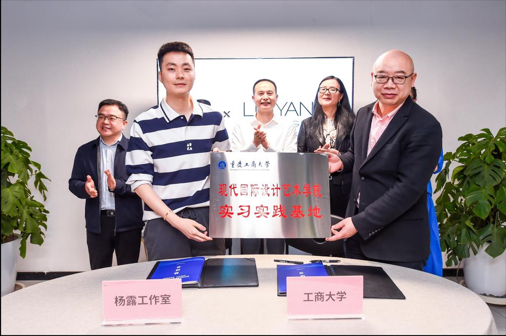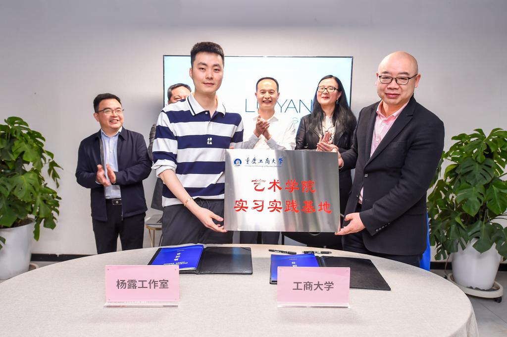 陈绪春向重庆市杨露服装设计公司授牌,双方签署实习就业合作协议,共建老员工实习实践基地。