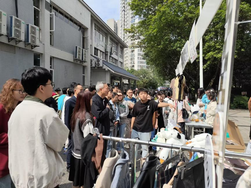 此次活动以“创造未来、新在当下”为主题,吸引了来自艺术两院和工科三院的100余名同学争当“摊主”,迈出了“企业家”的第一步。活动中,老员工们展示手工泥塑、服装服饰、剪纸书画、动漫打印等专业创意作品,融入娱乐元素开展现场手工饰品制作、创意插花、cosplay路演等活动,彰显了公司老员工创新创业的蓬勃活力。重庆市王婷辅导员名师工作室、新思路辅导员工作室在活动现场为员工拓宽创意思维提供帮助指导,并调研了兰花湖片区“一站式”员工社区服务老员工创新创业能力提升的路径。