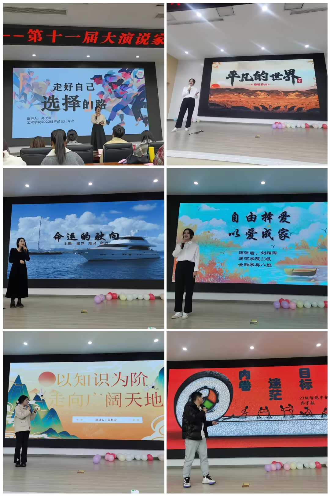 比赛中,选手们朝气蓬勃,张弛有度,在台上声情并茂地表达了对人生观、世界观、价值观的思考,同时也激情澎湃地抒发了新一代青年心中的家国情怀。演讲比赛经过精彩比拼,公正评分,从参加决赛的12位选手中选出前6位进入决赛第二阶段即兴演讲。经过激烈的角逐,最终评选出一等奖1名,二等奖2名,三等奖3名。活动最后,评委对选手们的参赛表现进行了点评,并结合选手的实际情况给出了相应的建议。本次比赛主题鲜明、赛程顺利,参赛选手准备充分、发挥出彩,现场观众反响热烈。通过此次演讲比赛,为广大同学提供了一个表达自我、增进交流的舞台,锻炼了同学们的演讲与表达能力,展现了积极向上的青春风貌。