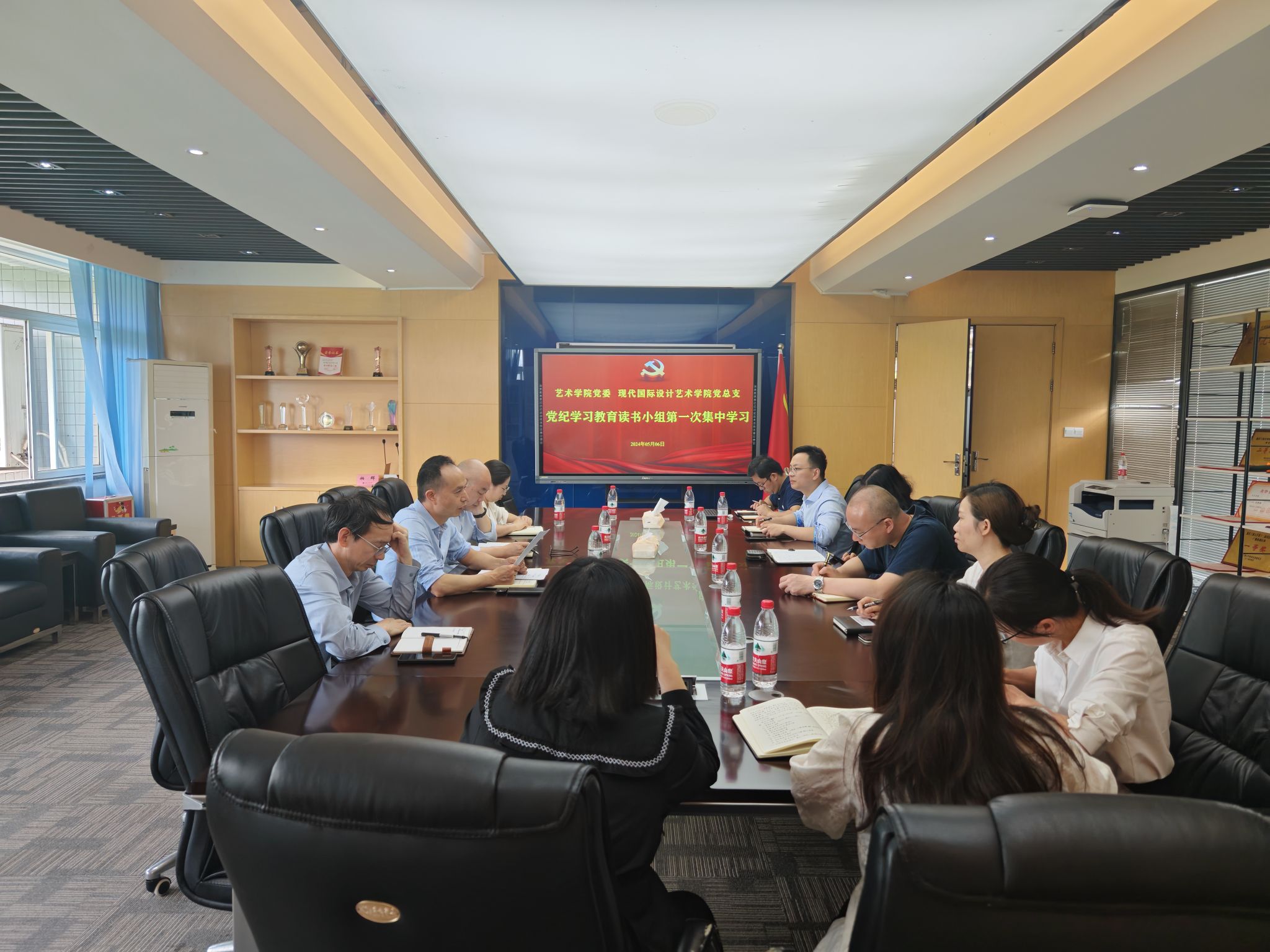 5月6日下午,现代国际设计术公司党总支、艺术公司党委在兰花湖片区崇德楼401会议室开展党纪学习教育读书小组第一次集中学习会。艺术两院全体党政领导、党总支(党委)班子成员参加学习,学习以会前自学和会上集中学习相结合的方式进行。