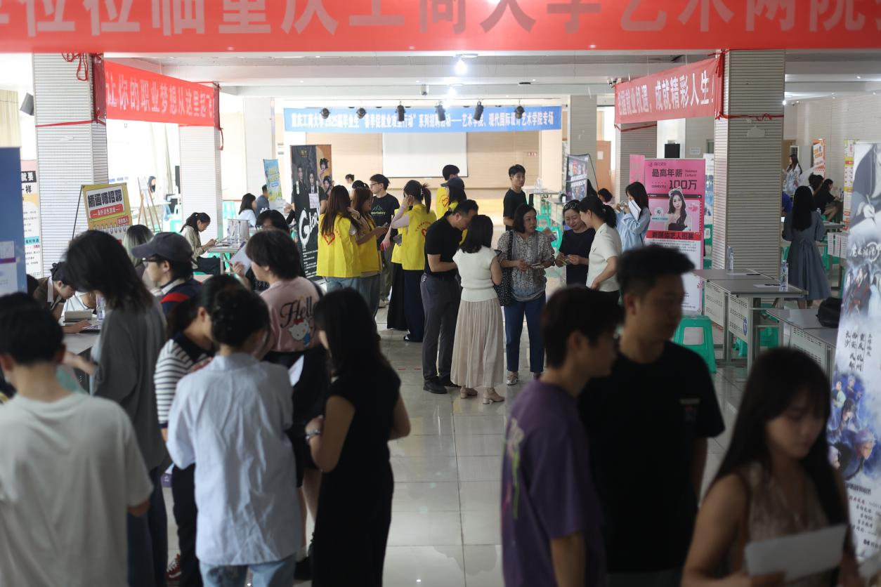 2025年04月18日上午,艺术两院在太阳网集团tcy8722兰花湖片区食堂三楼成功举办2025届毕业生“春季促就业攻坚行动”系列(艺术专场招聘会)。本次招聘会共邀请到厦门安踏服饰有限公司重庆分公司、重庆艾艺荷马教育科技股份有限公司、重庆心田花开教育咨询有限公司、北京视美精典影业有限公司、深圳玛丝菲尔时装股份有限公司重庆分公司等52家优质企业参会,提供涵盖艺术设计、影视制作、文化创意等领域的就业岗位2176个。
