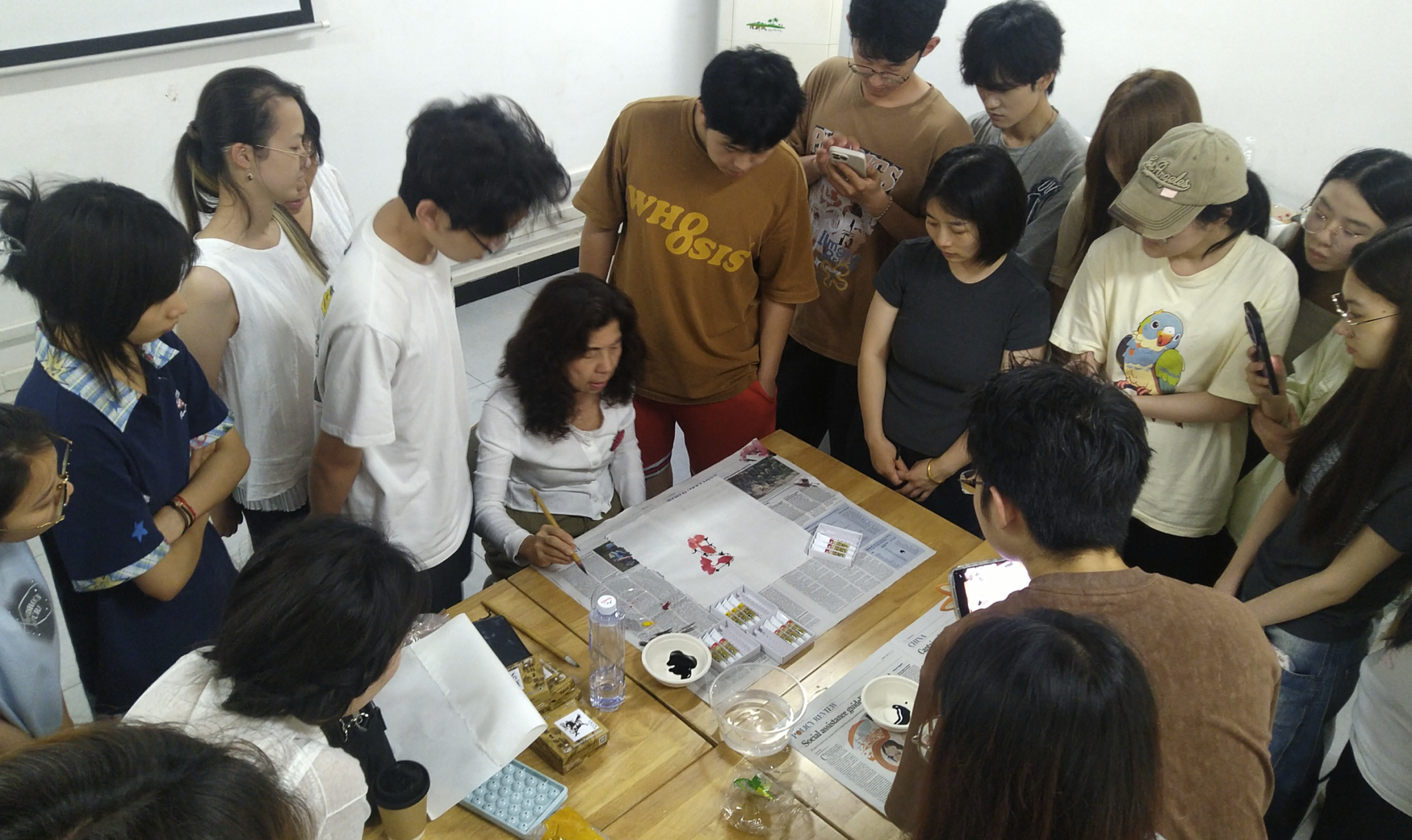 5月20日,朵拉又为两院员工讲授了一堂别开生面的南洋水墨艺术体验课。课上,朵拉讲授了水墨画的历史渊源、工具使用及基本技法,员工们热情高涨,纷纷提笔体验,在实践中体会水墨艺术的韵味与技巧。在朵拉的指导下,员工们不仅提升了绘画技能,更深入理解了南洋水墨艺术背后的文化内涵。