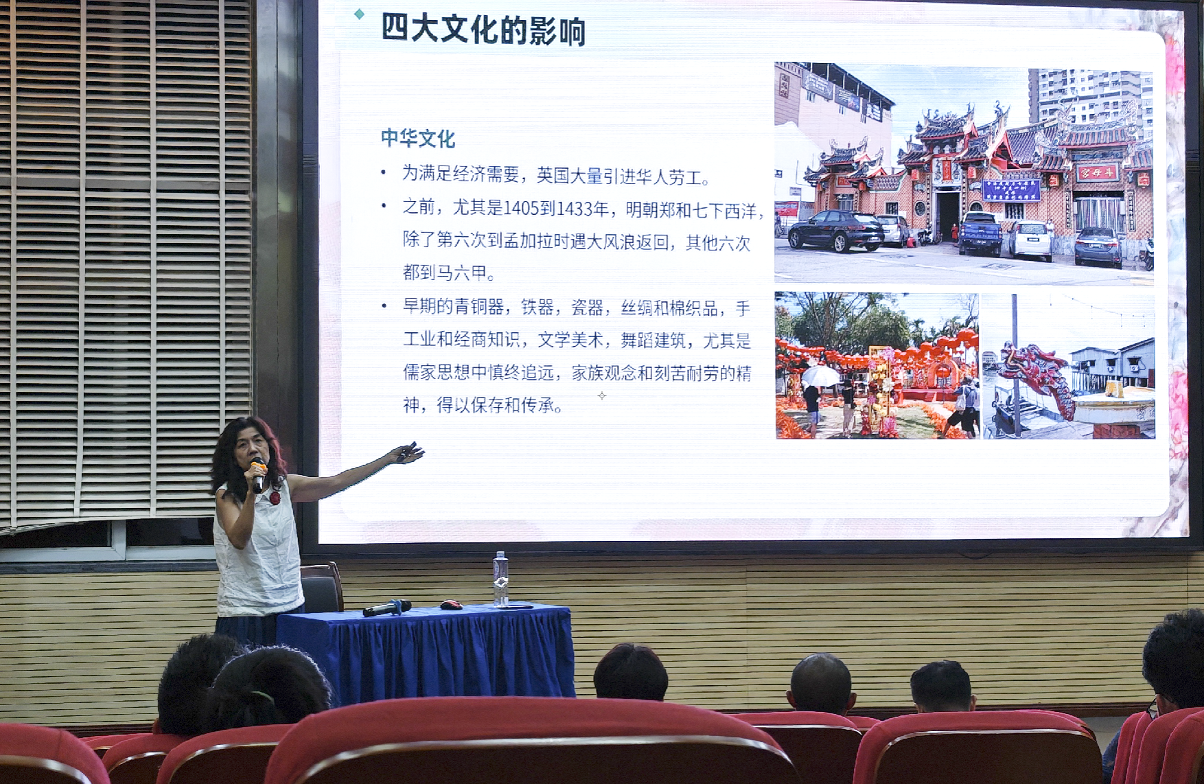 5月19日,在兰花湖报告厅,朵拉以“南洋风韵——马来西亚水墨画的演变与创新”为主题,为公司师生带来了一场精彩的艺术讲座,艺术两院近200余名师生参加讲座活动。朵拉深入讲解了传统水墨画在马来西亚的本土化发展历程。她讲到,随着华人迁徙至马来西亚,水墨画也在这片土地上生根发芽,并融入了诸多本土特色,最终形成了别具一格的南洋风水墨画。随后她又分享了自己对 “南洋风水墨画” 风格的探索与创新经验,通过现场展示,让师生们直观感受到文化融合为绘画艺术带来的独特魅力。