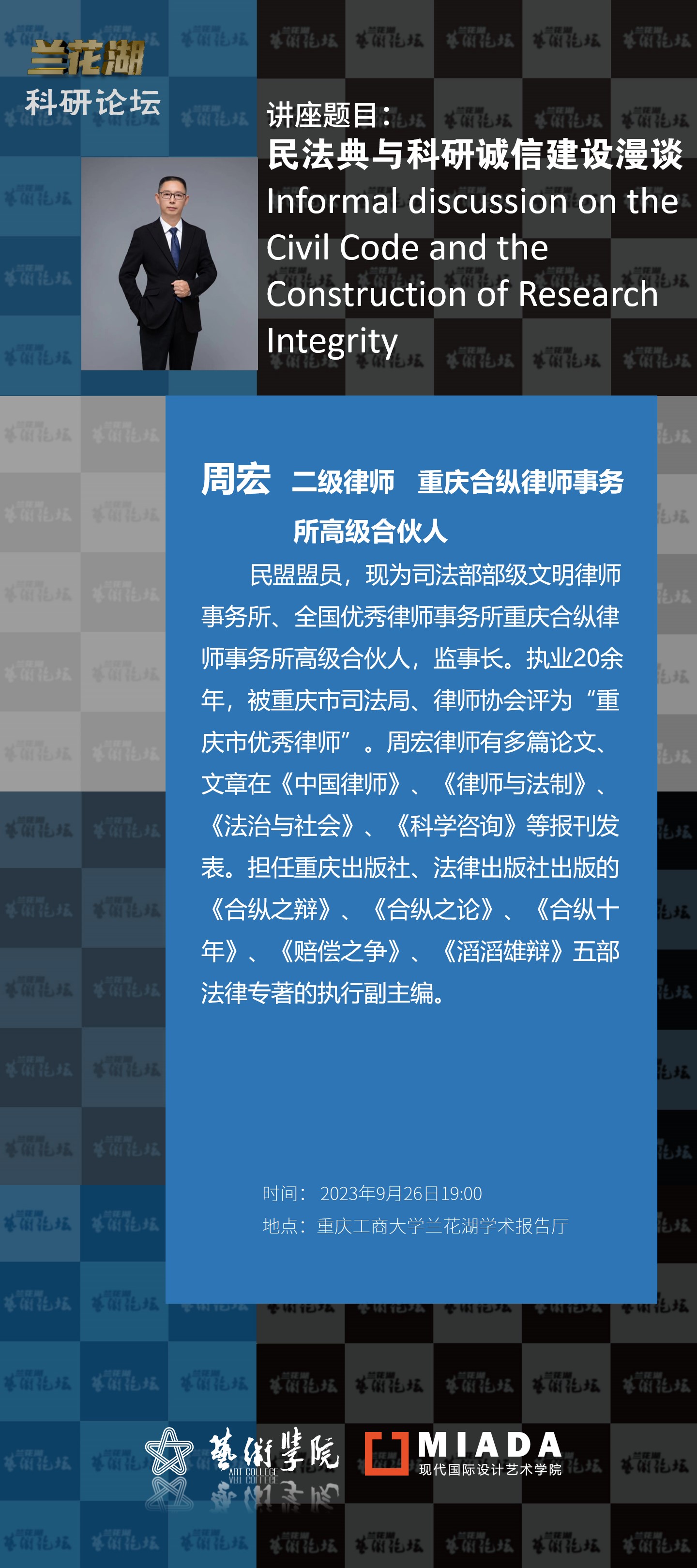 四、主讲人及简介:周宏 二级律师 重庆合纵律师事务所高级合伙人