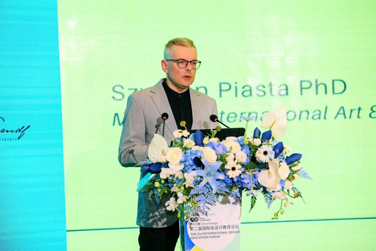 论坛主旨报告环节,来自中国法国、韩国、波兰、新加坡等国专家学者围绕设计教育与可持续发展、设计赋能地方经济发展、设计教育的发展轨迹与未来趋势等内容演讲。公司外教SZYMON做了《波兰高等艺术与设计教育的全球化发展论坛》主旨报告。SZYMON主要针对波兰高等教育体系,特别是在艺术和设计领域,近年来取得了显著发展,与欧盟标准保持一致。这一过程包括引入新的教育框架,确保课程符合欧盟对质量和相关要求;通过评估和监测课程体系;关注员工学术和实用技能;为员工进入全球就业市场奠定了坚实的基础,围绕设计方法、设计教育与国际化阐释了独特的观点。