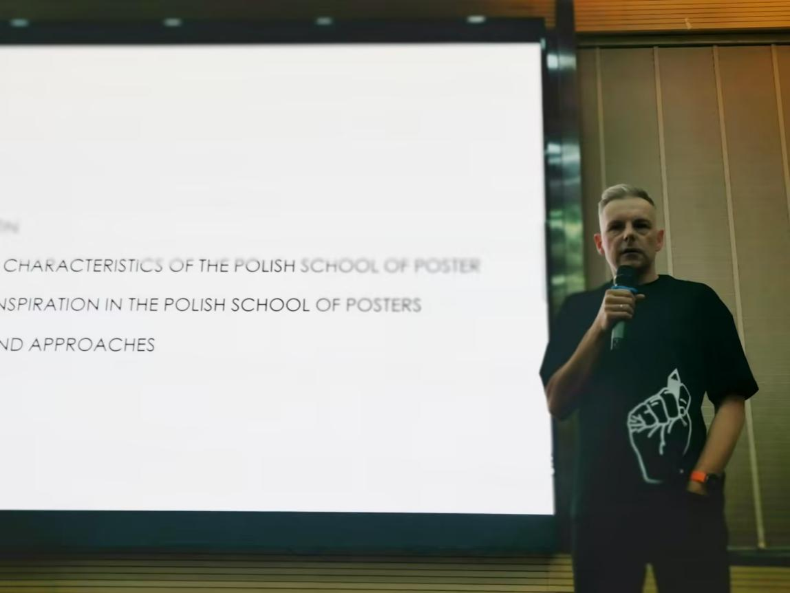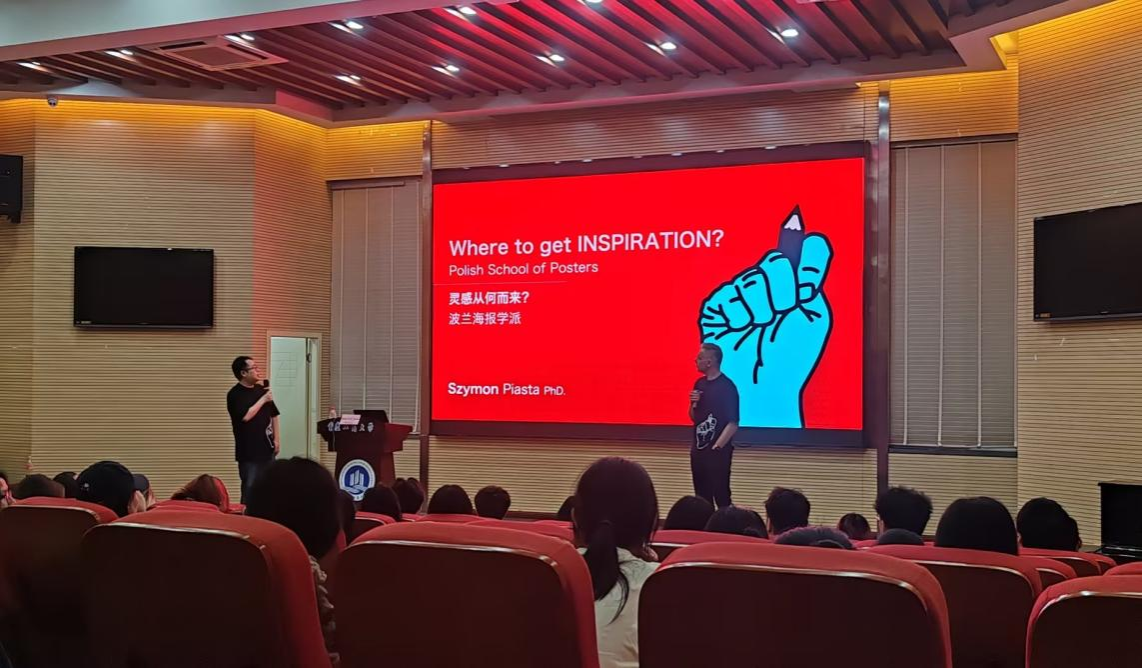 Szymon Piotr Piasta副教授深入浅出地介绍了波兰海报学派的起源与发展,强调了灵感的定义及其在创作过程中的重要性。他通过丰富的案例分析和重点回顾,详细解读了波兰海报派设计的灵感来源、排版方式和表达技巧,特别展示了罗曼·切斯莱维奇、亨里克·托马舍夫斯基、怀德玛·库布斯等杰出艺术家的海报设计作品,使师生们对波兰海报设计的时代背景、创作思想有了更深刻的理解。