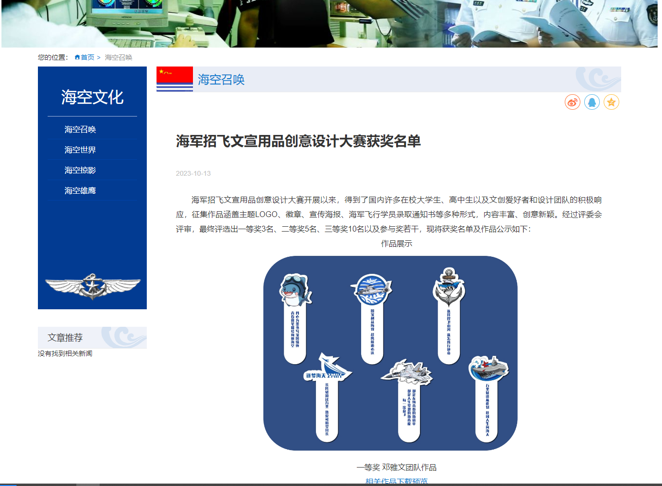 图2 海军招飞网发布的获奖名单