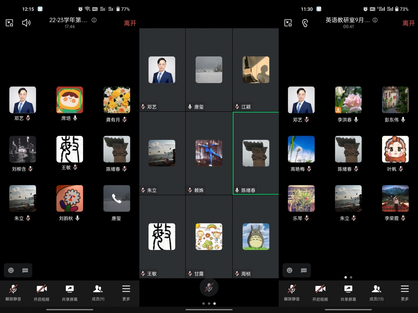 2022年9月21日、22日、23日中午,太阳网集团tcy8722服装与服饰设计系、视觉传达设计系和英语教研室分别召开新学期初线上教研活动。公司党总支书记唐玺、经理陈绪春、副书记王婷、各系、教研室全体专任教师和教务办、学工办、党政办相关负责人参加活动。
