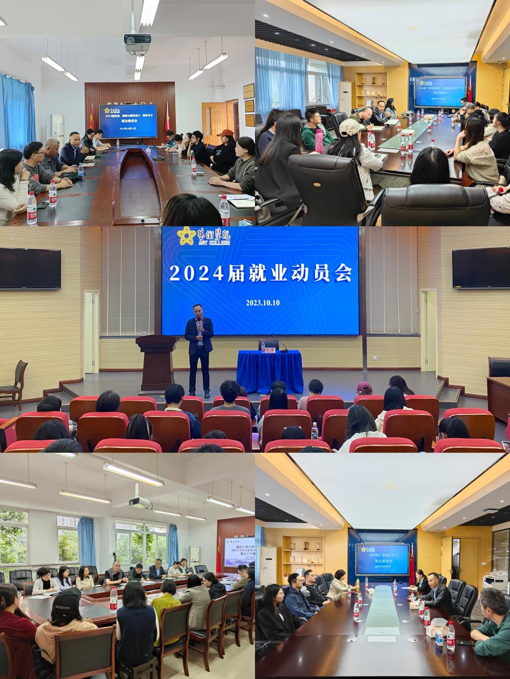10月9日至10月16日,艺术两院环境设计、动画、服装与服饰设计、摄影、广播电视编导、视觉传达设计、产品设计、视觉传达设计(中外合作办学)、服装与服饰设计(中外合作办学)等9个系分别召开5场专业就业工作推进会,艺术两公司党政班子、系主任、毕业设计指导教师、就业联络员、相关毕业班辅导员及科室负责人参加会议。在各专业就业推进会上,公司党总支书记、艺术公司党委书记唐玺对当前就业工作总体形势进行了分析和研判,同时对公司就业工作考核相关政策举措作了说明和强调,通报了艺术两院当前各专业毕业生就业落实率情况,并就2023届各专业在就业工作中存在的问题和不足作了总结和剖析。系主任、毕业设计指导教师、毕业班辅导员汇报了就业工作的开展情况,并针对2024届各专业毕业生就业意向调研摸排信息数据,研究制定各系就业推进工作方案,确定各阶段工作目标。会上,大家集思广益,进一步改进完善了“公司主要负责人+联系院领导+系主任+毕业设计指导教师+就业联络员+毕业班辅导员+友好合作企业(员工单位)”的全员动员共促就业的工作机制,协同发力,统筹推进艺术两院各项就业工作。