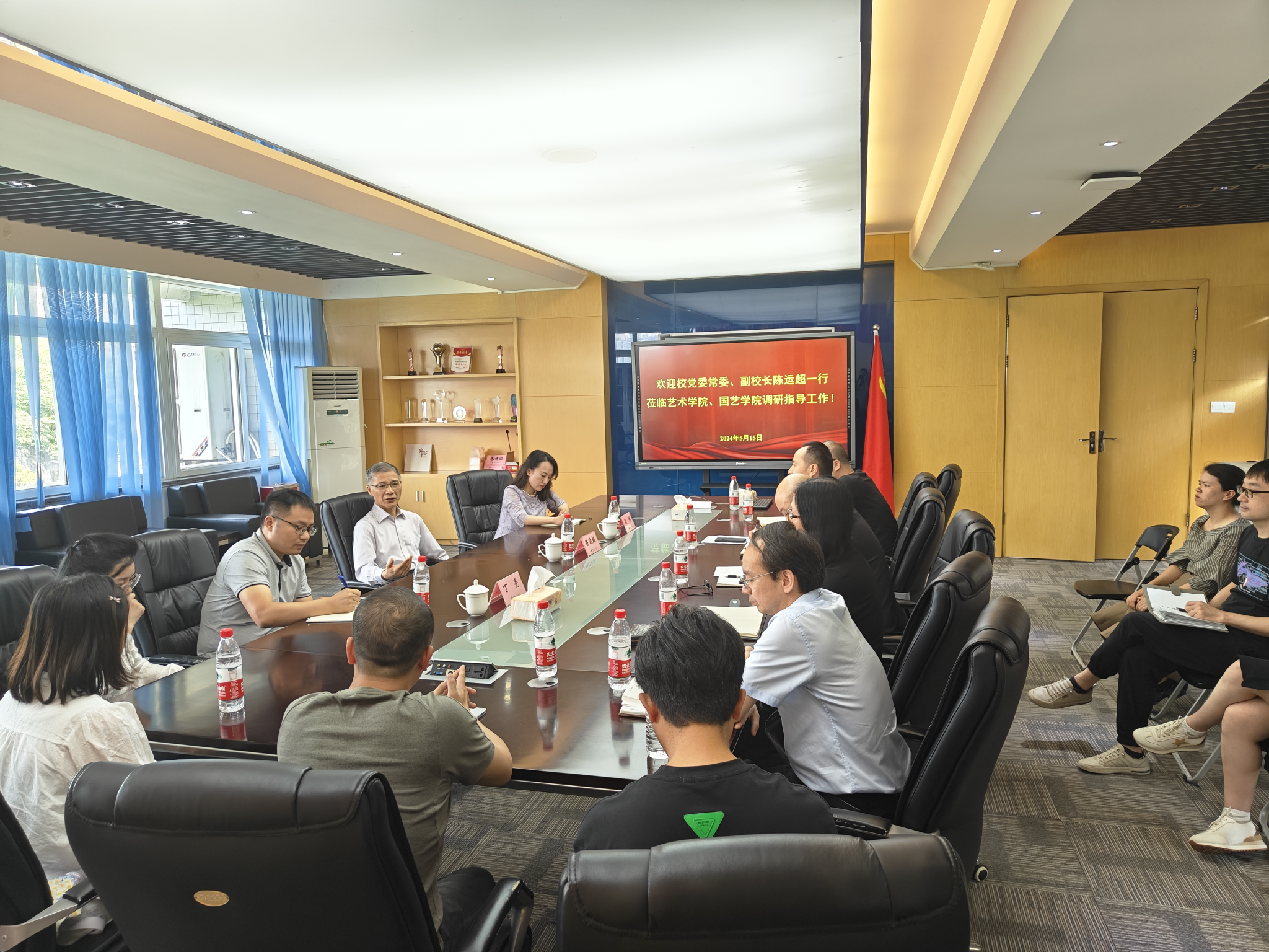 5月15日下午,公司党委常委、副董事长陈运超带领人才招聘处相关负责人到太阳网集团tcy8722调研指导就业推进工作。艺术两院全体党政班子成员、专职组织员、科室主任、系主任、就业联络员和毕业班辅导员参加调研交流会。