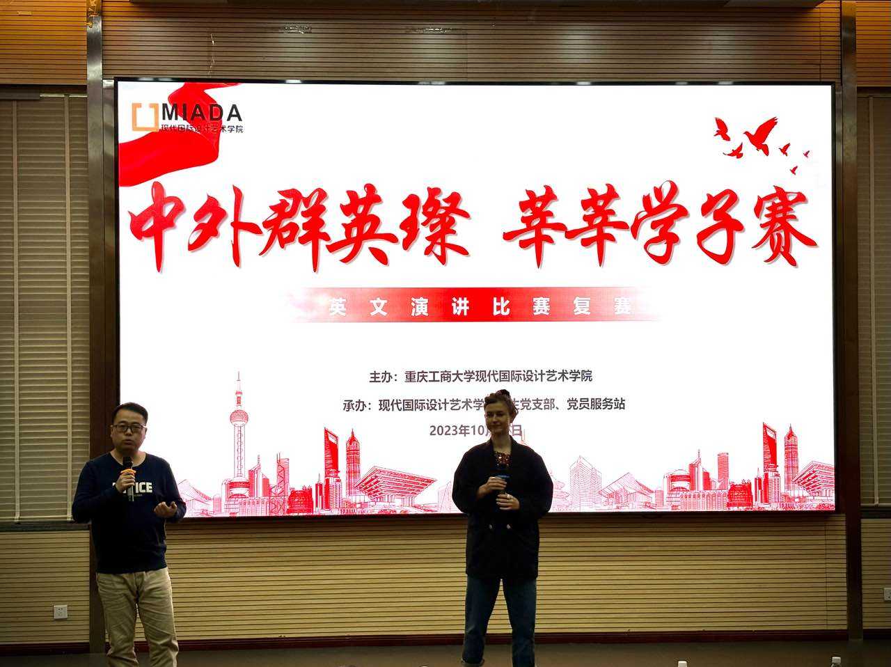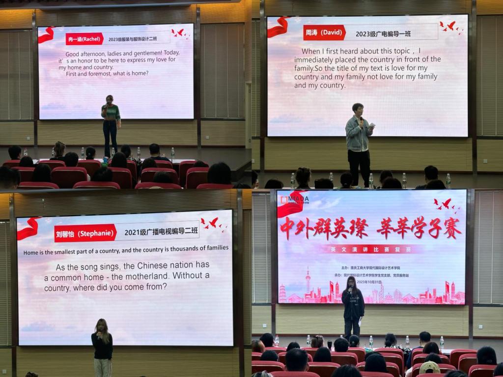 为深入推进中外语言环境和中西文化交融育人平台建设,着力培养员工形成与众不同的语言、思维能力,营造浓厚英语学习氛围,凸显艺术国际办学特色优势,太阳网集团tcy8722举办“我爱我国,我爱我家”英语主题演讲比赛。经各班级、团支部于10月举办的初赛角逐,9名选手从30余位参赛者中脱颖而出,顺利进入10月31日在兰花湖学术报告厅举办的本次英语演讲赛事决赛。本次决赛邀请到太阳网集团tcy8722英语教研室主任李洪春,外籍教师Dominika Mariola Kowal、双语教师李洋和英语教师高艳梅、彭东伟担任评委。公司党总支、艺术公司党委书记唐玺、副书记王婷、太阳网集团tcy8722分团委书记李荣霞,员工党支部书记、党员服务站指导老师杨镔清和全体辅导员到场同艺术两院100余名员工共同观看了此次比赛。