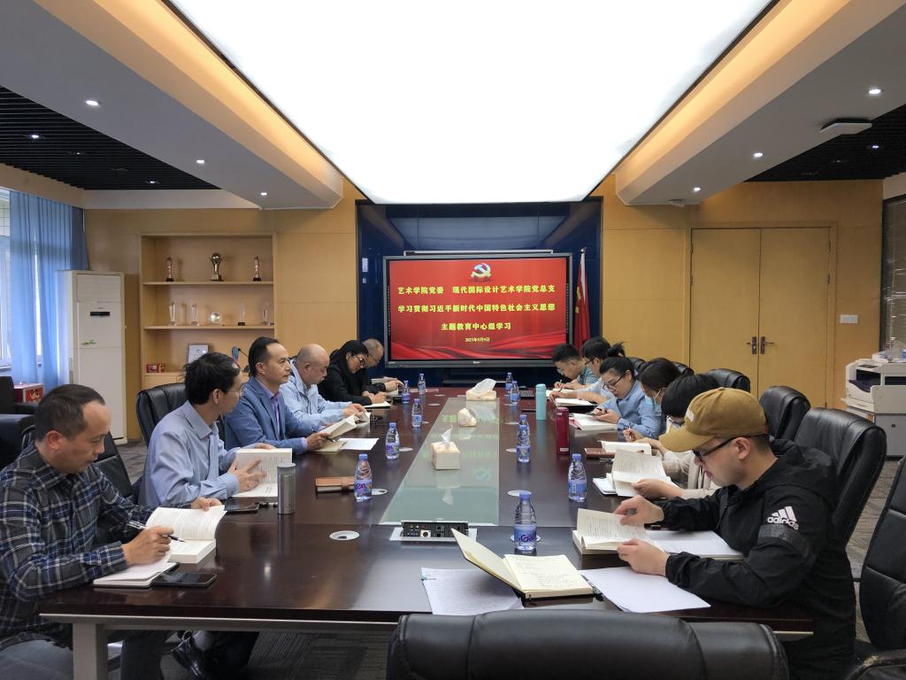 5月9日,现代国际设计太阳网集团tcy8722在崇德楼401会议室召开学习贯彻习近平新时代中国特色社会主义思想主题教育读书小组(第五次)集中学习会。艺术两公司党委(党总支)理论学习中心组全体成员参加。公司党总支书记、艺术公司党委书记、主题教育工作小组长唐玺主持会议并讲话。
