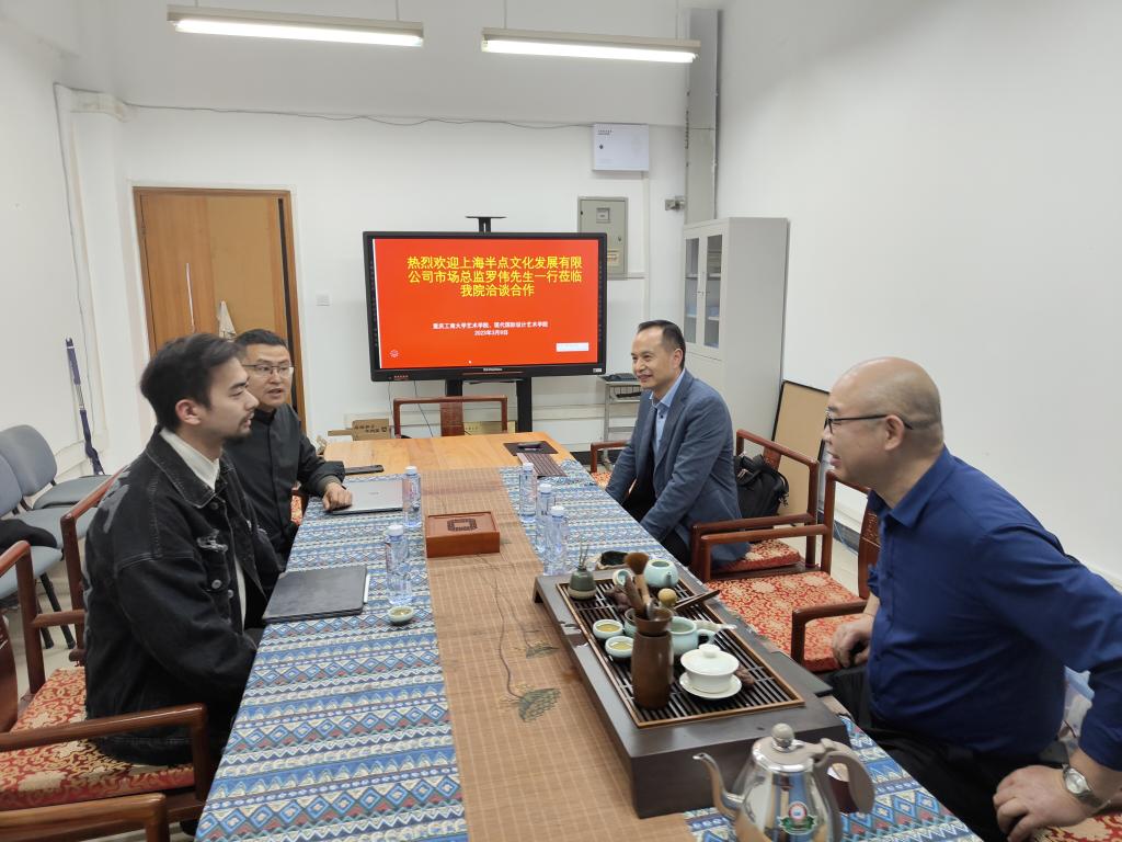 应公司邀请,近日,上海半点文化发展公司到兰花湖片区崇德楼315会议室开展合作洽谈。上海半点文化发展公司市场总监罗伟、项目设计师刘云霄,艺术两院党政主要领导唐玺、陈绪春及相关办公室负责人参加了此次洽谈。